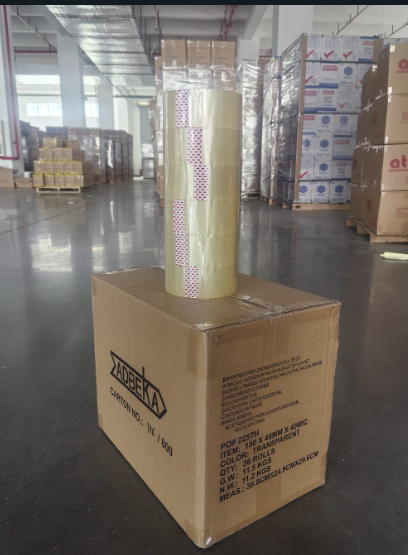 Cinta adhesiva de alta resistencia para empaque, uso industrial y envíos. Excelente adherencia y rendimiento. Caja con 36 piezas